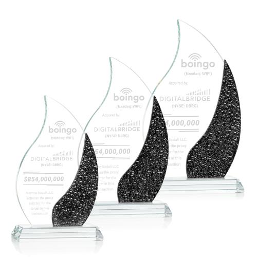 The Oakley Flame Award is a radiant masterpiece that stands out amongst the crowd! The main body of the award takes the form of a dynamic flame, meticulously sculpted from Starfire Crystal. What sets this award apart is the innovative inclusion of a stained glass-like texture at the side of the award that follows the curved flame shape. This intricate detail adds a layer of complexity and artistry to the design, creating a visual symphony of color and pattern. Mounted on a clear tapered Starfire Crystal base, this unique yet versatile award is suitable for recognizing achievements in any industry! Available in various colors.