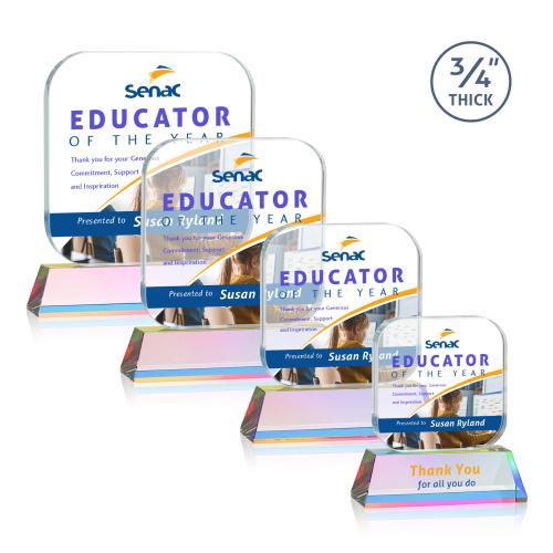 With its rounded square shape, this Starfire Crystal App VividPrint Award was designed to embody a mobile app icon! Mounted on a prismatic Newhaven Optical Crystal base, this recognition piece is perfect for appreciating and awarding the work of a well-rounded developer, project manager, or designer during app launch. **Second position imprint optional.**