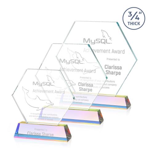 The Ralston Optical Crystal Award on a tall tapered optical base in our choice of 9 distinct colors. Featuring a large hexagonal crystal display with your magnificent achievement permanently deep etched by hand. Second position etch and colorfill optional.