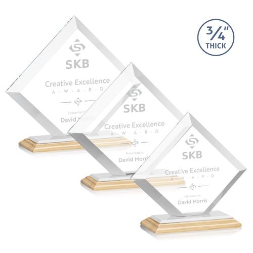 The Belaire Award in **3/4" thick** Starfire Crystal is an eye-catching recognition piece with dramatic mitered edges that combine with a triple-stepped Bamboo Base. The dazzling display of light will sparkle around your impressive words of achievement. Various other bases are available!