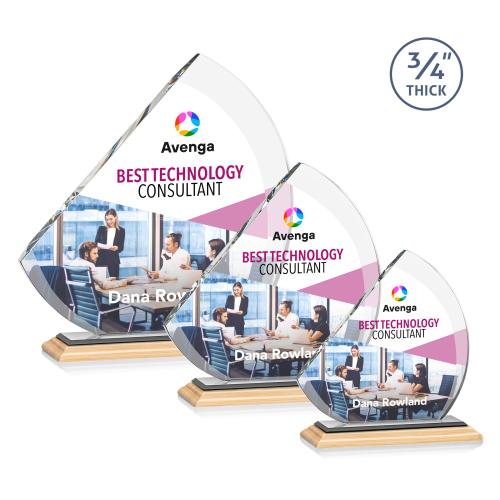 The contemporary Nantucket VividPrint Award is made from thick 3/4" Starfire Crystal with contrasting deep bevels that rise to a flat edge. This striking work of recognition is mounted on a triple-stepped bamboo base and is a magnificent award to honor a top performer.