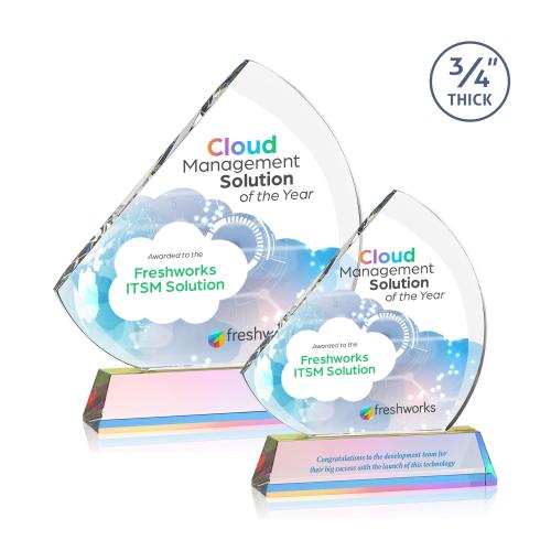 The contemporary Nantucket VividPrint Award is made from thick 3/4" Starfire Crystal with contrasting deep bevels that rise to a flat edge. This striking work of recognition is mounted on a tall prismatic crystal base and is a magnificent award to honor a top performer. Second position imprint optional.