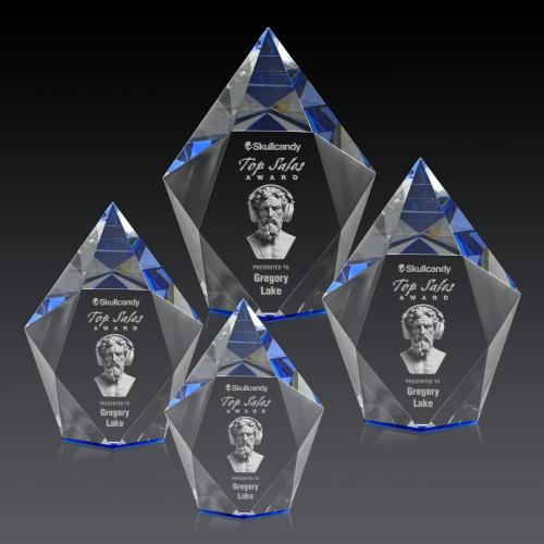 The spectacular and sparkling Devron 3D Award features a thick freestanding Optical Crystal pentagon with deep facets and a colored bottom that creates a colorful halo for refracted light around your inspirational words of achievement. Bring your artwork to life with 3D Subsurface Engraving!
