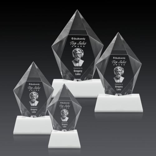 The spectacular and sparkling Devron 3D Award features a thick Optical Crystal pentagon with deep facets creating a halo for refracted light around your inspirational words of achievement. Mounted on a tall tapered optical base in your choice of 8 distinct colors. Second position etch and colorfill optional. **Our 3D Pop process creates a simulated 3D effect from a 2D photo. For a true 3D engraving, please provide a 3D engraving file (.obj), or we can redraw it for a fee.**
