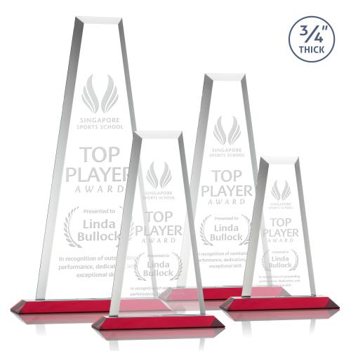 The elegant Imperial Award reflects a 0.75" thick Starfire Crystal tower and showcases stoic bevels throughout the piece. With an opulent Red base, this striking award is an outstanding recognition gesture.