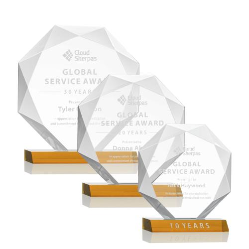 Striking Starfire Octagon award refracts light through all of its facets creating a brilliant display for achievement recognition. Available in 3 sizes and 10 different colored bases.