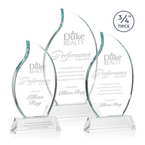 The Croydon award features an elegant 3/4" thick Starfire Crystal flame to commemorate your achievement with an eternal symbol of greatness. Mounted on your choice of 8 sparkling colored Newhaven bases. Second position etch optional.