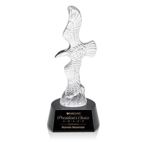 The Staffordshire Eagle on Base is a powerful award crafted in Optical Crystal, showcasing a finely detailed eagle in full flight with outstretched wings. Its striking design symbolizes strength, vision, and achievement, making it a commanding centerpiece for recognition. Available with a choice of elegant bases in blue, black, or clear crystal, it can be customized to suit any award presentation.