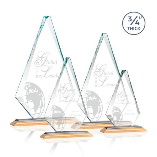 The exquisite Windsor Award features a 0.75" thick Starfire Crystal diamond with sparkling bevels and is mounted on a triple-stepped bamboo base. A classic design that's perfect for corporate recognition. Various other bases are available!