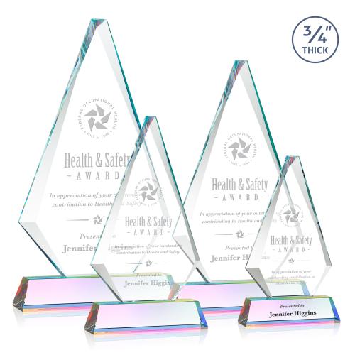 The exquisite Windsor Award features a 0.75" thick Starfire Crystal diamond with sparkling bevels and mounted on a tall tapered Optical Prismatic Crystal Base in your choice of 9 distinct colors. A classic design that's perfect for corporate recognition. Second Position Etch & Colorfill Optional.