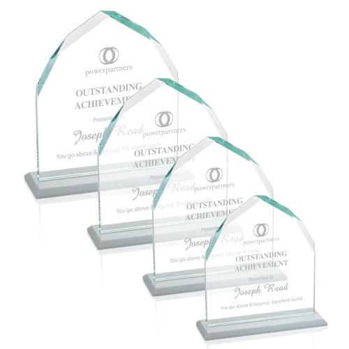 The Montibello Award features an exquisite Starfire upright with interchanging front and back facing bevels, mounted on a beveled white Starfire base to create a striking award.