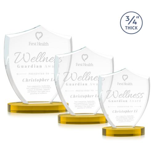 A shield signifies protection, authority, and stability, making the Scudo Shield Award suitable for recognizing outstanding excellence for first responders and law enforcement. This Starfire Crystal Award features beveled edges and is mounted on an oval optical crystal base.