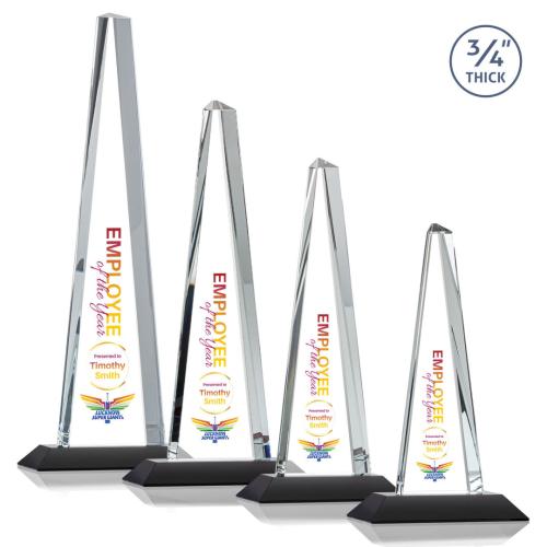 Make a monumental statement with the Majestic Tower VividPrint Award. Featuring a statuesque 3/4" thick Starfire Crystal tower with a Starfire Crystal base, this work of recognition is the perfect way to reward an outstanding achievement. Colorfill optional.