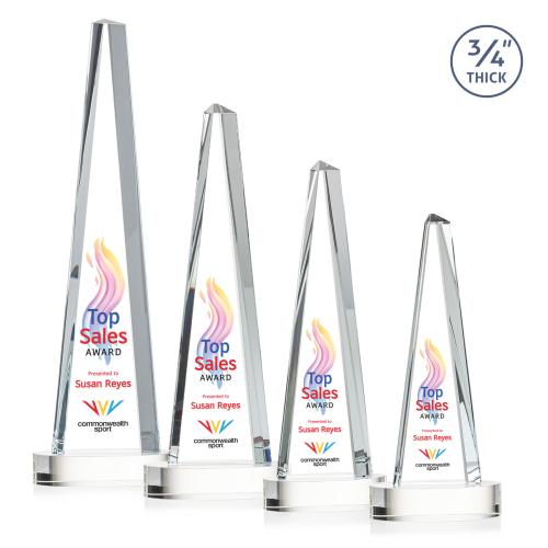Make a monumental statement with the Majestic Tower VividPrint Award. Featuring a statuesque 3/4" thick Starfire Crystal tower with a Starfire Crystal Alberton base, this work of recognition is the perfect way to reward an outstanding achievement. Colorfill optional. Second Position optional.