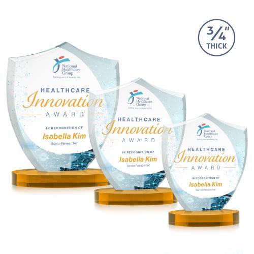 Scudo Shield Full Color Amber on Alberton Base Unique Crystal Award