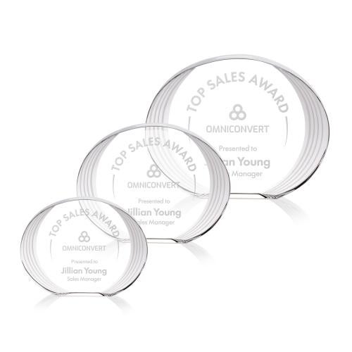 The Sheraton Oval Award showcases a sleek, freestanding oval design with a subtly concaved shape and a striped, ridged edge that draws attention to the imprint area. Its layered detailing creates depth and visual interest, elegantly framing your personalized message or logo. Refined and contemporary, this award is a striking way to recognize achievement with modern style.