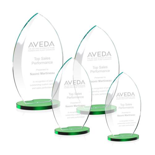 The graceful arc of the Windermere Award echoes its shape with a broad beveled edge and is accented with a round emerald green crystal base.