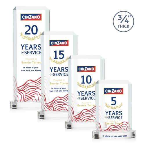 The Dalton Starfire Crystal VividPrint Award features a thick 3/4" tower with mitered edges all around that create a sparkling frame for your message of recognition. Available with your choice of 9 distinct and vivid colored bases, the Dalton award radiates light throughout the room and showcases your special achievement. Enhance your artwork with full-color VividPrint!