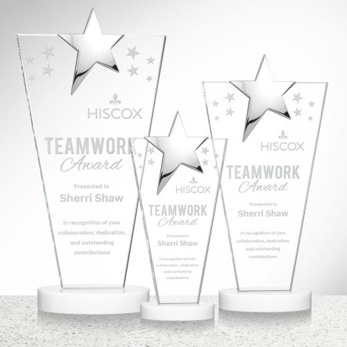 The Optical Crystal Mantella Star Award features a sleek tapered rectangle design accented by a brilliant chrome or gold star at the top. Mounted on a clear oval optical crystal base, this award radiates prestige and celebrates stellar achievement.