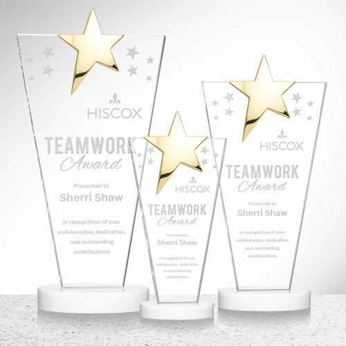 The Optical Crystal Mantella Star Award features a sleek tapered rectangle design accented by a brilliant chrome or gold star at the top. Mounted on a clear oval optical crystal base, this award radiates prestige and celebrates stellar achievement.