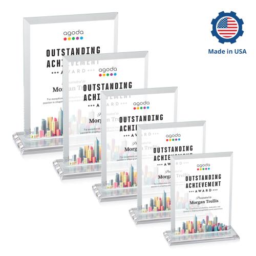 Our extraordinary beveled Starfire rectangle Denison VividPrint Award is combined with optical crystal, the latest trend in designer glass, to update a classic look with chic style.