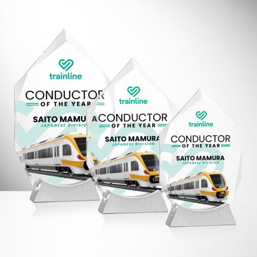 The Westmore VividPrint Award is a striking recognition piece crafted from premium Starfire crystal with a bold geometric shape and refined beveled edges. It rests on a sleek brushed aluminum base that adds a modern touch to its elegant design. Ideal for celebrating excellence and achievement, this award offers customizable engraving to honor every milestone with distinction. Adda POP! of colour with full-color VividPrint!