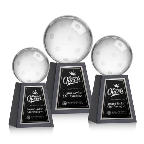 Our Pickleball Award is a tribute to the athleticism and dedication of pickleball enthusiasts. At the heart of this masterpiece is a flawlessly rendered Optical Crystal Pickleball that captures and refracts light in a captivating display. Mounted on a complimenting Optical base for personalization with a Logo or Name. An outstanding award, gift, or keepsake for pickleball tournaments, competitions, or special occasions.