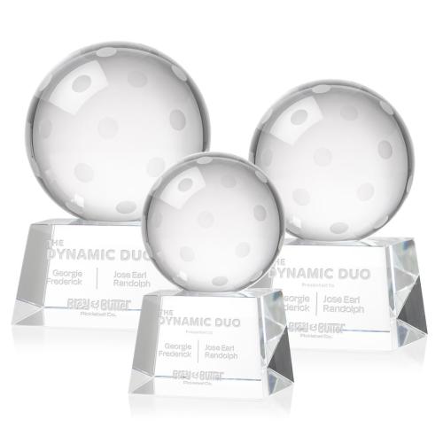 Our Pickleball Award is a tribute to the athleticism and dedication of pickleball enthusiasts. At the heart of this masterpiece is a flawlessly rendered Optical Crystal Pickleball that captures and refracts light in a captivating display. Mounted on a complimenting Optical base for personalization with a Logo or Name. An outstanding award, gift, or keepsake for pickleball tournaments, competitions, or special occasions.