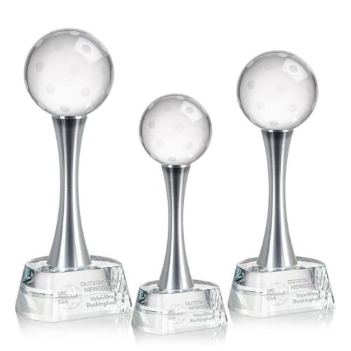 Our Pickleball Award is a tribute to the athleticism and dedication of pickleball enthusiasts. At the heart of this masterpiece is a flawlessly rendered Optical Crystal Pickleball that captures and refracts light in a captivating display. Mounted on a complimenting Optical base for personalization with a Logo or Name. An outstanding award, gift, or keepsake for pickleball tournaments, competitions, or special occasions.