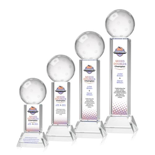 Pickleball Full Color Clear on Stowe Base Globe Crystal Award