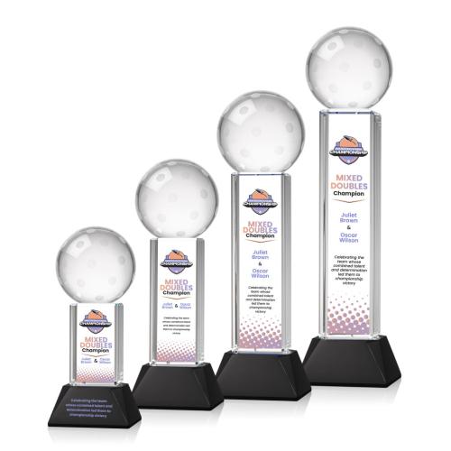 Pickleball Full Color Black on Stowe Base Globe Crystal Award