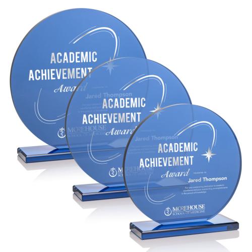 The Dunlow Award is a striking symbol of achievement, featuring a bold circular design. Set atop a solid blue base, the award features matching blue accents in the circle, creating a cohesive and elegant look. Perfect for honoring excellence, this award makes a lasting impression with its modern style and brilliant color.