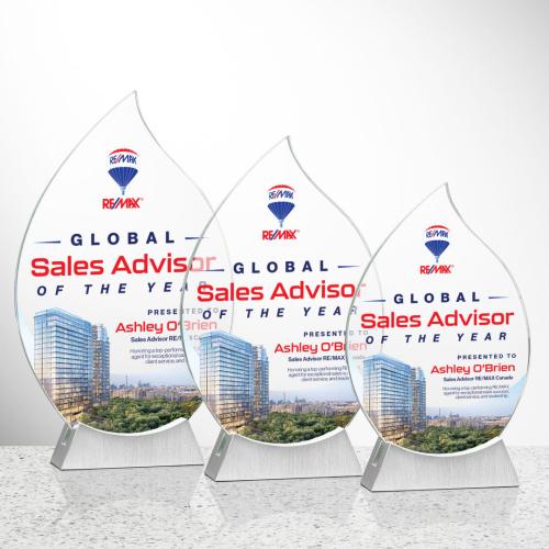 The stunning starfire crystal Carmack VividPrint Award features a graceful flame/teardrop shape, symbolizing inspiration, growth, and achievement. Mounted on a sleek brushed aluminum base, it combines modern elegance with timeless design. Perfect for honoring rising leaders, top performers, or milestone accomplishments, this award leaves a lasting impression of prestige and recognition. Bring your artwork to life with full-color VividPrint!