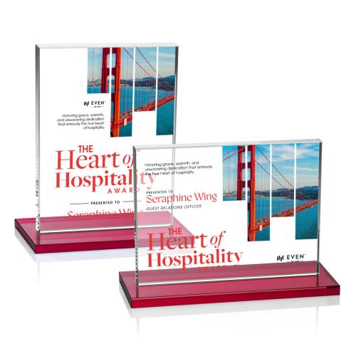 The Emperor VividPrint Award is a simple yet elegant 0.5" thick Starfire Crystal rectangle upright mounted vertical or horizontal on a beveled Starfire base. An ideal award featuring a large decorating area to recognize a significant achievement. Available with colored bases, see associated items.