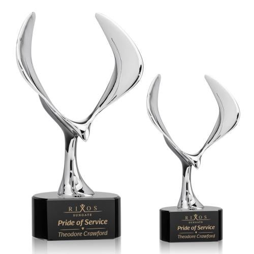 The Maverick Eagle Award showcases a soaring chrome eagle, a bold symbol of vision, freedom, and achievement. Its dynamic wingspan is elevated by a choice of elegant Optic Crystal bases, available in various shapes and finishes to suit any recognition style. This striking award makes a powerful statement, celebrating excellence with both strength and sophistication.