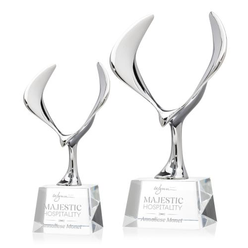 The Maverick Eagle Award showcases a soaring chrome eagle, a bold symbol of vision, freedom, and achievement. Its dynamic wingspan is elevated by a choice of elegant Optic Crystal bases, available in various shapes and finishes to suit any recognition style. This striking award makes a powerful statement, celebrating excellence with both strength and sophistication.