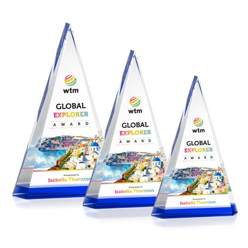 Helston Full Color Blue Pyramid Crystal Award