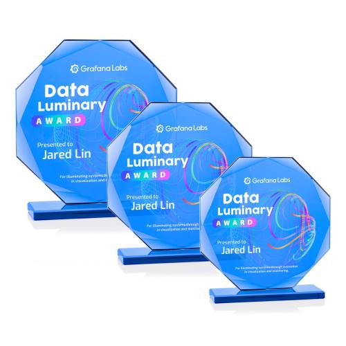 The Cavendale VividPrint Award is a stunning starfire crystal recognition piece featuring a multi-faceted octagon design that reflects light beautifully from every angle. Its sleek blue crystal base and expansive imprint area make it ideal for showcasing logos, award titles, and personalized messages with exceptional clarity. Perfect for honoring excellence and milestone achievements, this award delivers a modern, sophisticated presentation worthy of your top performers. Make your logo POP! with full-color VividPrint!