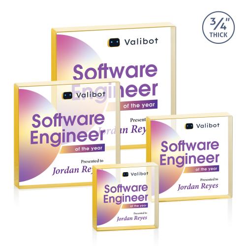 Upton Square Full Color Gold Square / Cube Crystal Award
