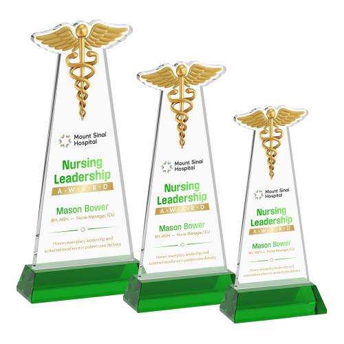 Caduceus Full Color Green on Hartford Base Unique Crystal Award