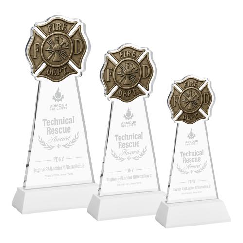 The Fire Dept Award is crafted from brilliant Starfire Crystal, showcasing exceptional clarity and a distinguished presence. Featuring a detailed fire department emblem at the top and mounted on a precision side-tapered Hartford base, this award offers depth, dimension, and lasting impact. Perfect for honoring bravery, service milestones, and departmental excellence, it stands as a proud tribute to those who serve. Second Position Etch & Colorfill Optional.
