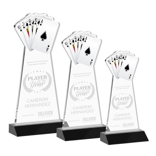 The Poker Award is crafted from premium Starfire Crystal and features a detailed deck-of-cards cutout at the top, complete with a vibrant imprinted card design for striking visual impact. Mounted on a precision front mitered base, the clear crystal construction delivers brilliant clarity and a refined, contemporary presence. Perfect for tournaments, casino-themed events, and player recognition, this award is a winning tribute to standout performance. Second Position Etch & Colorfill Optional.