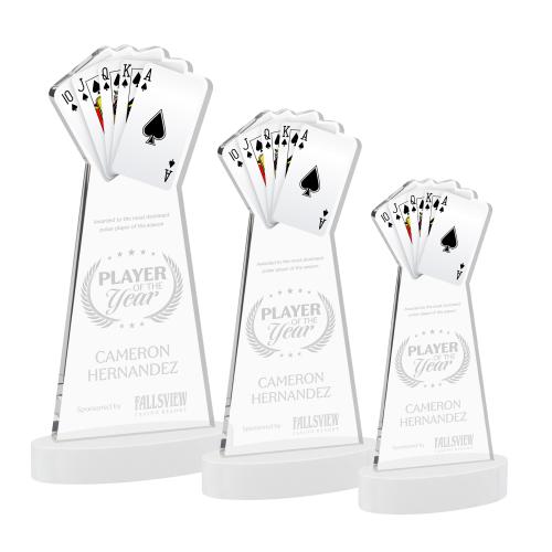 The Poker Award is crafted from premium Starfire Crystal and features a detailed deck-of-cards cutout at the top, complete with a vibrant imprinted card design for striking visual impact. Mounted on an oval Alberton base, the clear crystal construction delivers brilliant clarity and a refined, contemporary presence. Perfect for tournaments, casino-themed events, and player recognition, this award is a winning tribute to standout performance. Second Position Etch & Colorfill Optional.