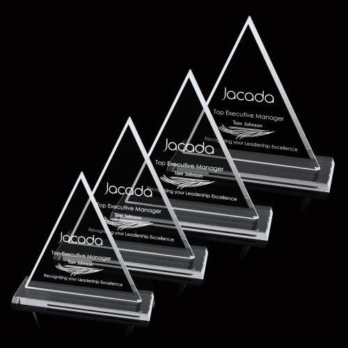 The 5" high, Starfire glass Princeton is the classic beveled, 0.5" thick triangle award best suited to artwork that is naturally centered and ordered hierarchically. Also available in 7", 9" and 11" versions and in jade glass.