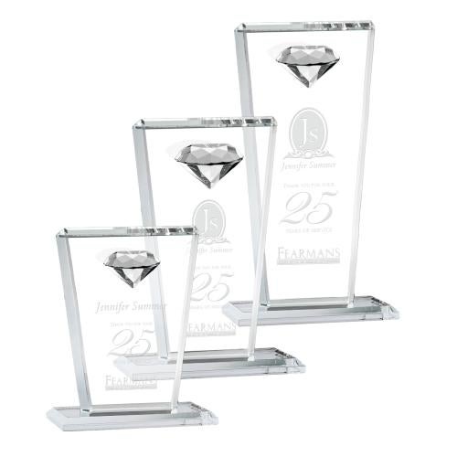 This tapered Crystal Award features a sparkling faceted diamond gemstone to give prominence to your accomplishment.