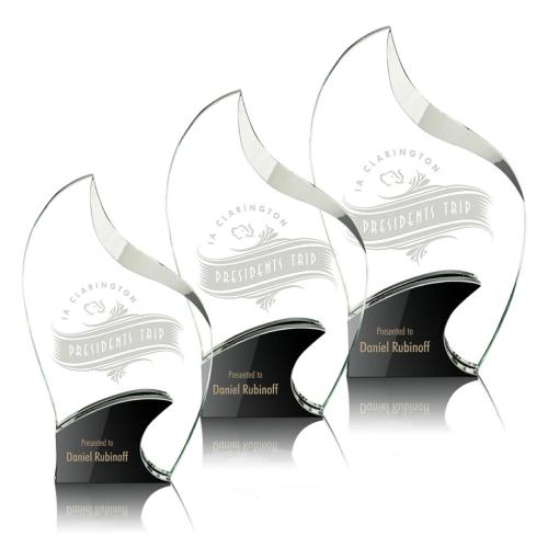 Brilliant Optical Crystal award features a Black Optical Crystal base and a Bevelled Clear Optical flare top. Also available in Blue. Second position etch optional.