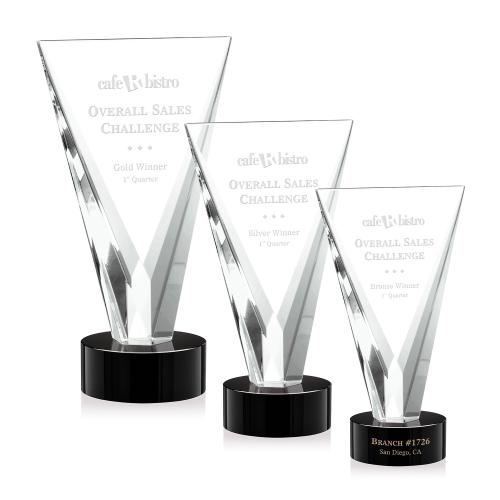 The beautifully tapered Mustico Optical Crystal award emerges from a solid Optical base into a prominent display of achievement recognition. Available on a Clear, Black, Blue or Green Optical Crystal base.