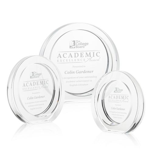 Featuring a thick freestanding bottom that tapers to the top and a deep recessed center, the Templeton award is a bold display of optical crystal achievement.