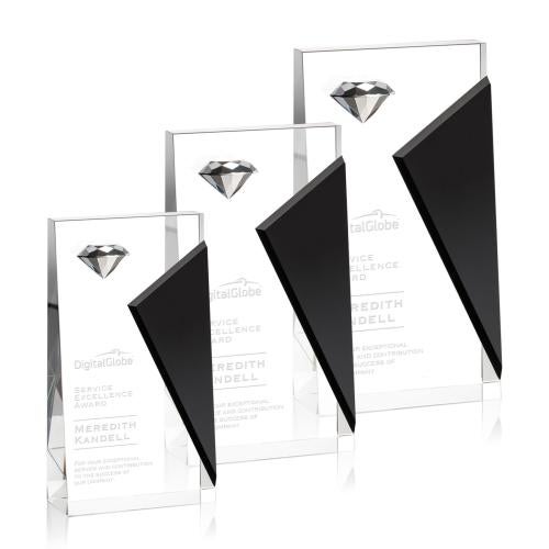 Our tapered optical crystal tower is accented with a dramatic black optical crystal accent and highlighted with a sparkling faceted crystal diamond to give your accomplishment 100 carat prominence.