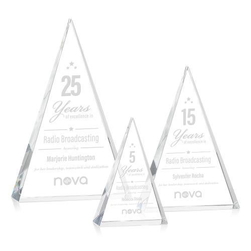 The sparkling Monroe Pyramid award is made from extra thick Optical Crystal and is the perfect award to recognize the pinnacle of success. Offering a large deep etch area for your inspirational message or words of gratitude and ships in a black satin-lined presentation gift box.